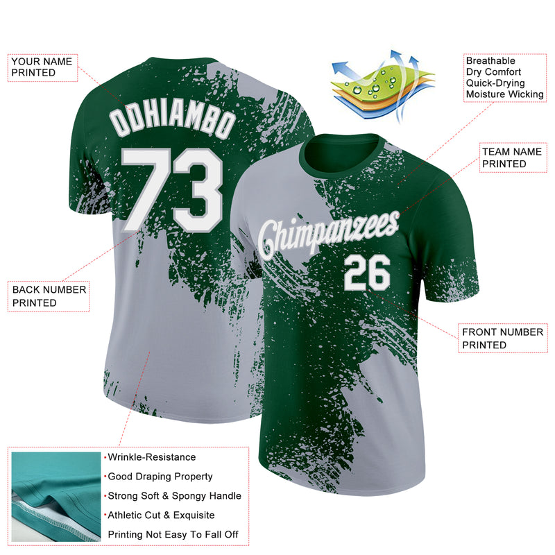 Custom Green White-Gray 3D Pattern Design Abstract Brush Stroke Performance T-Shirt