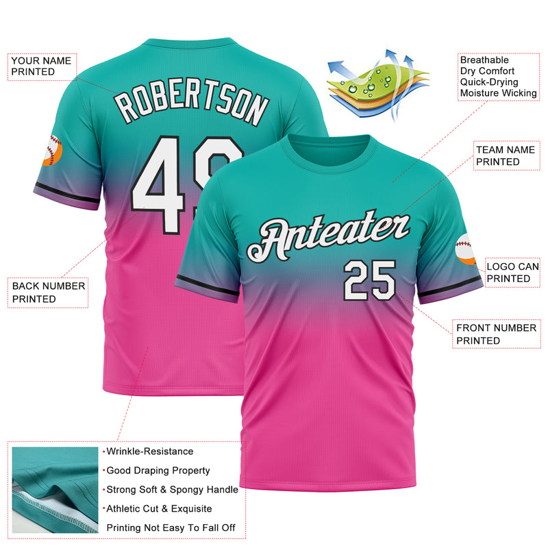 Custom Aqua Pink-Black Fade Fashion Performance T-Shirt