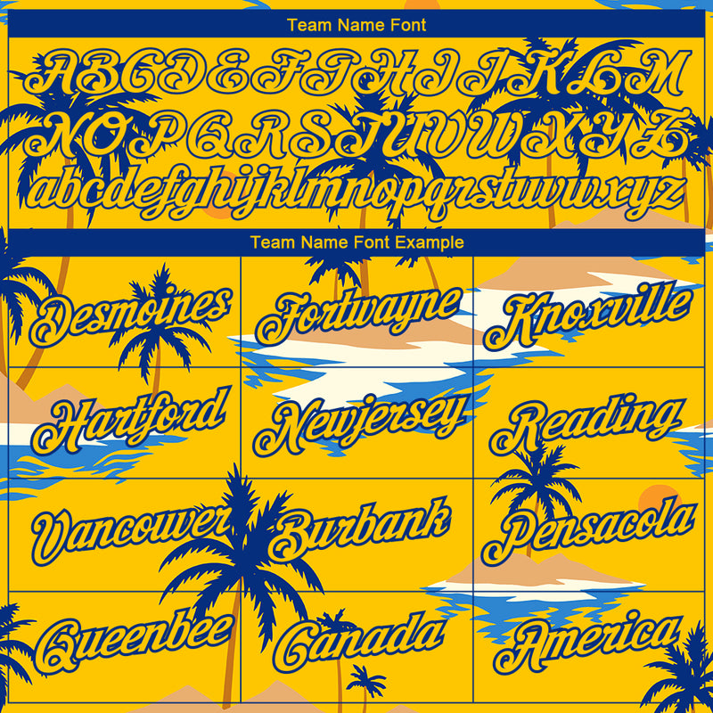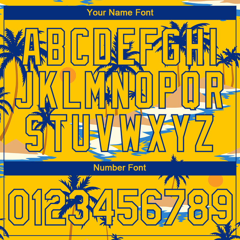 Custom Yellow Royal 3D Pattern Design Sun Beach Hawaii Palm Trees Performance T-Shirt