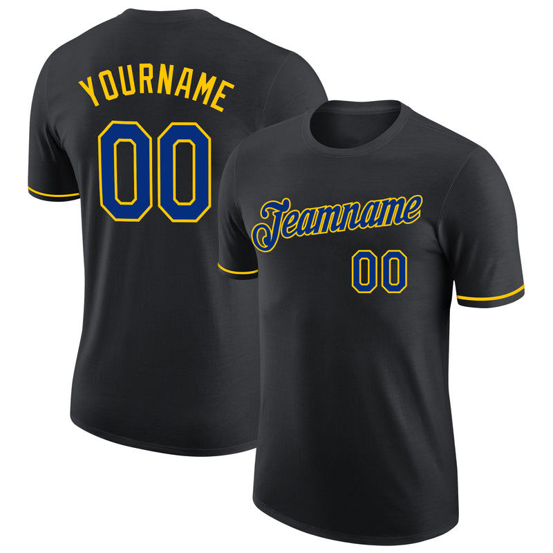 Custom Black Royal-Yellow Performance T-Shirt