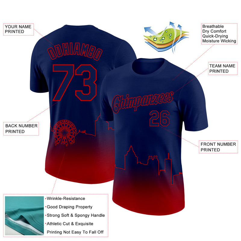 Custom Navy Red 3D Atlanta City Edition Fade Fashion Performance T-Shirt