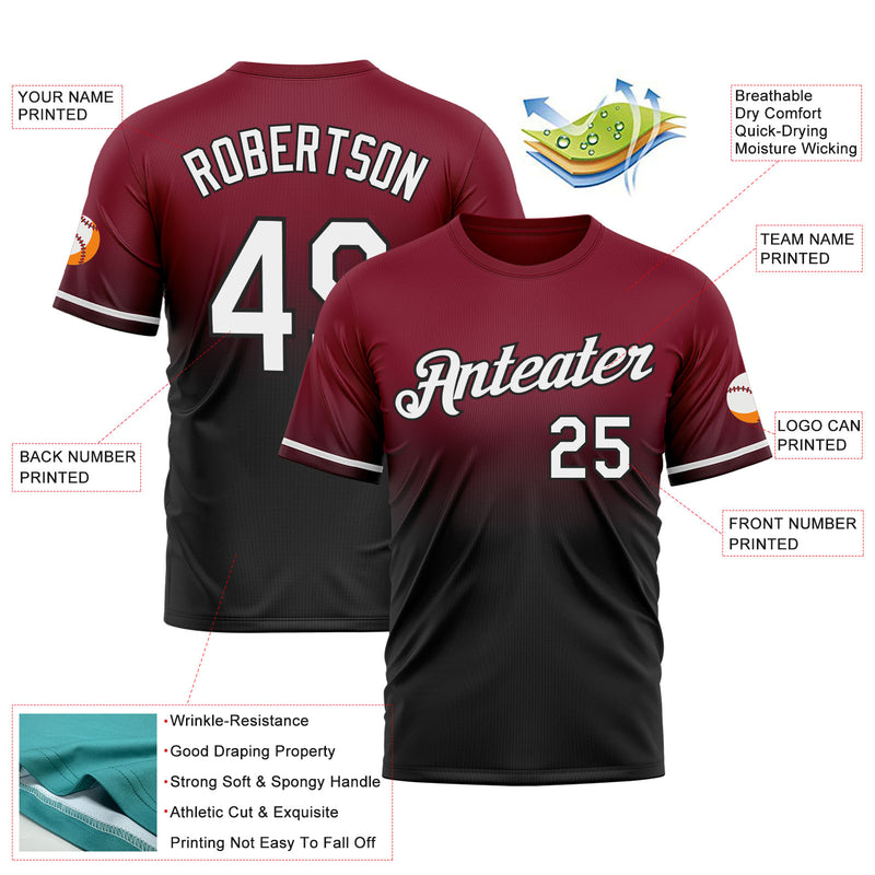 Custom Crimson White-Black Fade Fashion Performance T-Shirt
