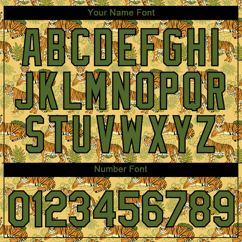 Custom Gold Olive-Black 3D Pattern Design Tiger Performance T-Shirt