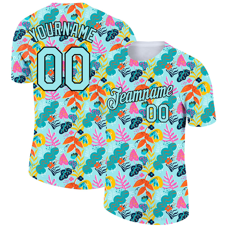 Custom Lakes Blue Black 3D Pattern Design Abstract Leaf Performance T-Shirt