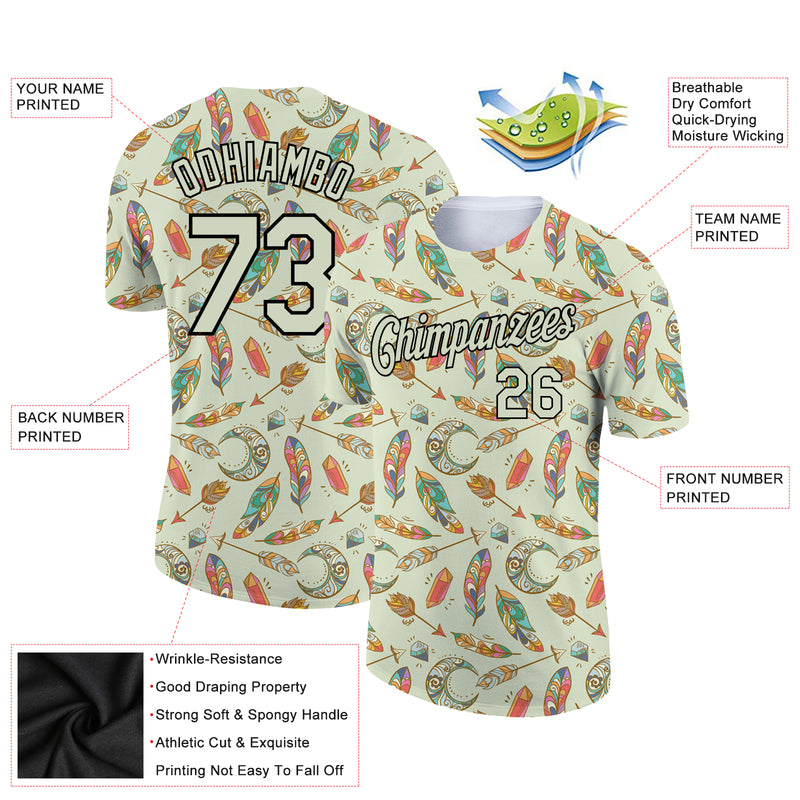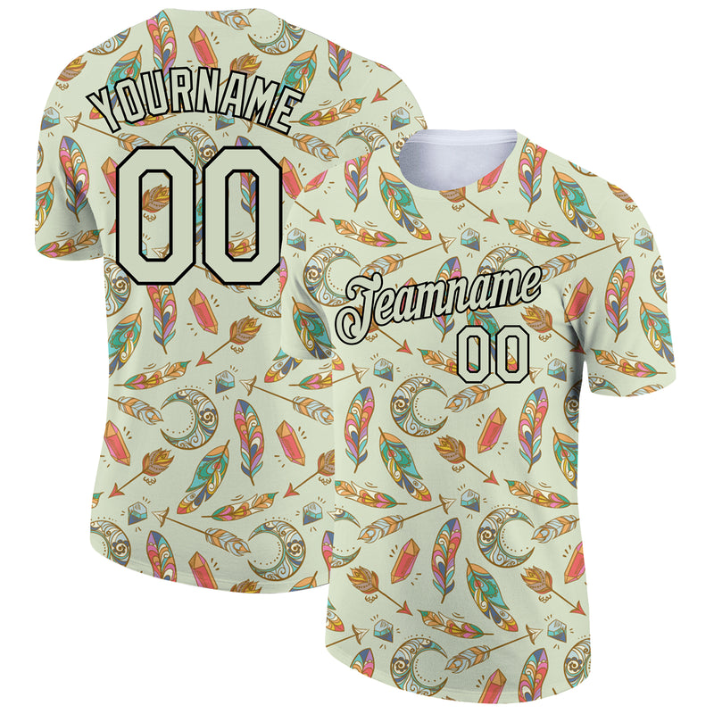 Custom Pea Green Black 3D Pattern Design Boho Style Performance T-Shirt