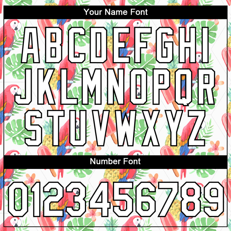 Custom White Black 3D Pattern Design Tropical Hawaii Bird And Fruit Performance T-Shirt