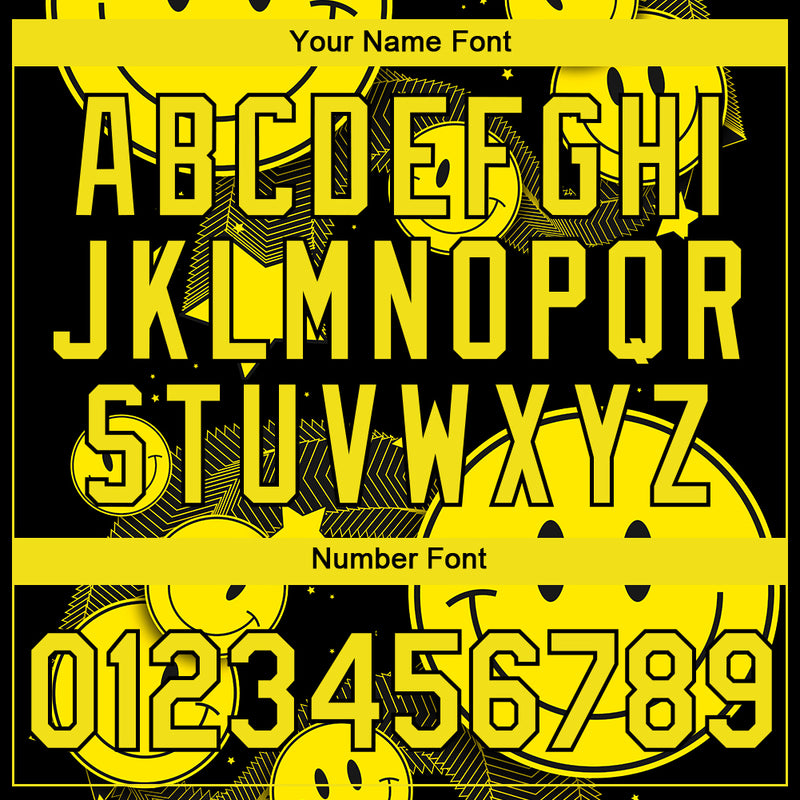 Custom Black Light Yellow 3D Pattern Design Smile Emoji Performance T-Shirt