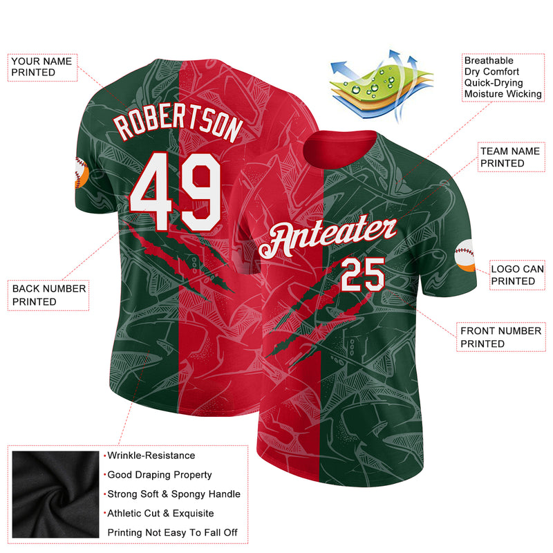 Custom Graffiti Pattern Green-Red Scratch 3D Performance T-Shirt
