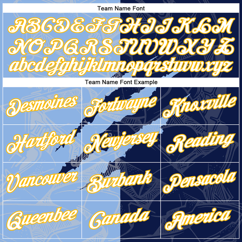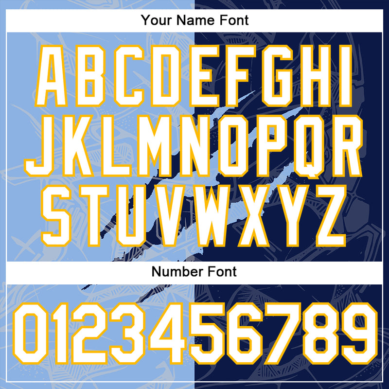 Custom Graffiti Pattern Navy Light Blue-Gold Scratch 3D Performance T-Shirt