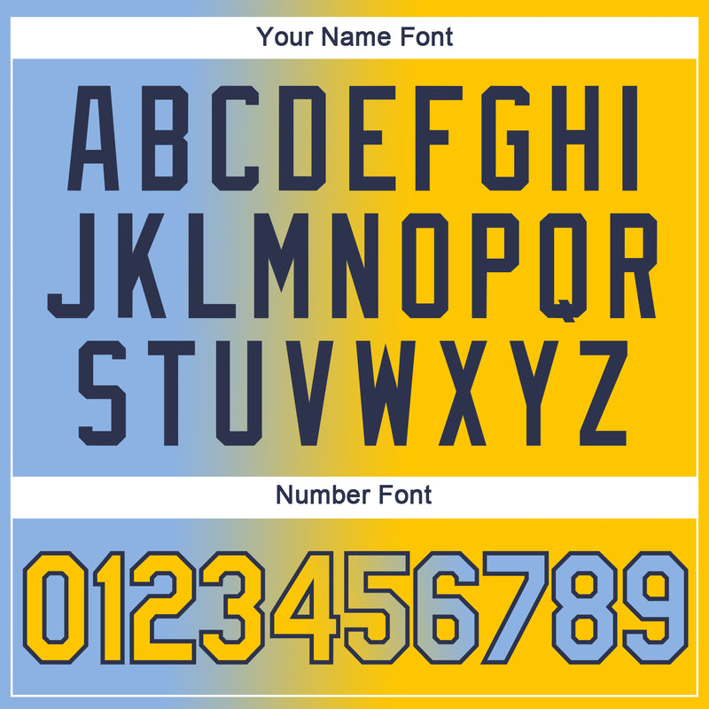 Custom Light Blue Yellow-Navy Gradient Fashion Performance T-Shirt