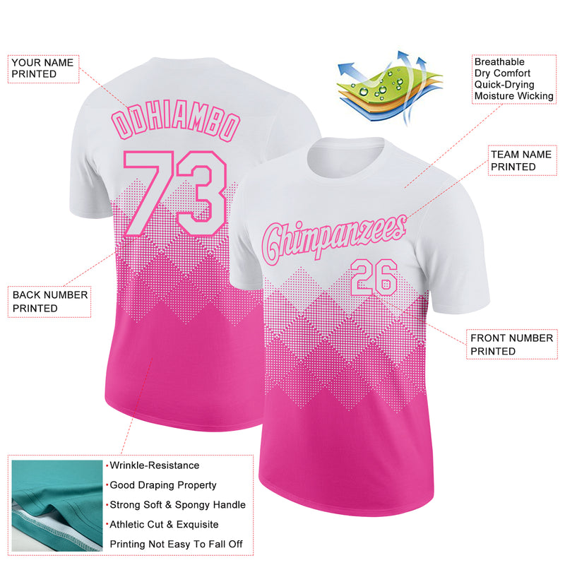 Custom White Pink 3D Pattern Design Gradient Square Shapes Performance T-Shirt