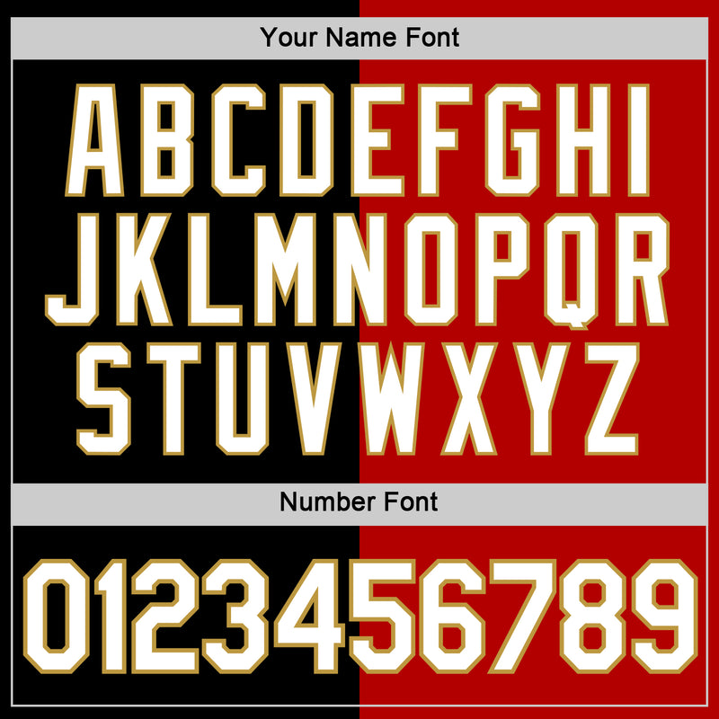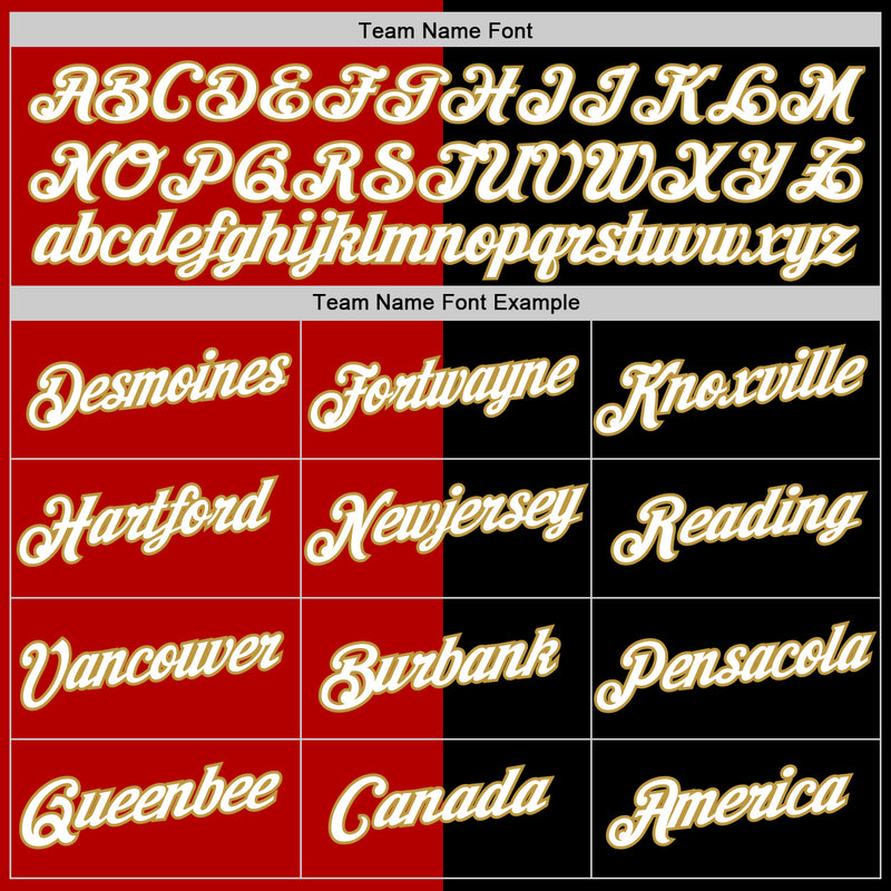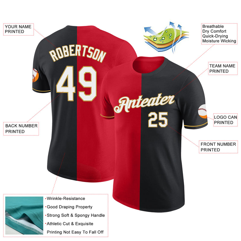Custom Black Red-Old Gold Split Fashion Performance T-Shirt