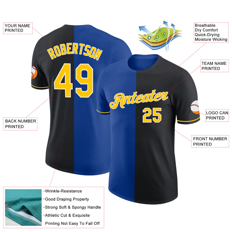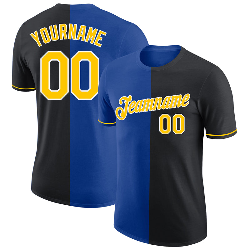 Custom Black Yellow-Royal Split Fashion Performance T-Shirt