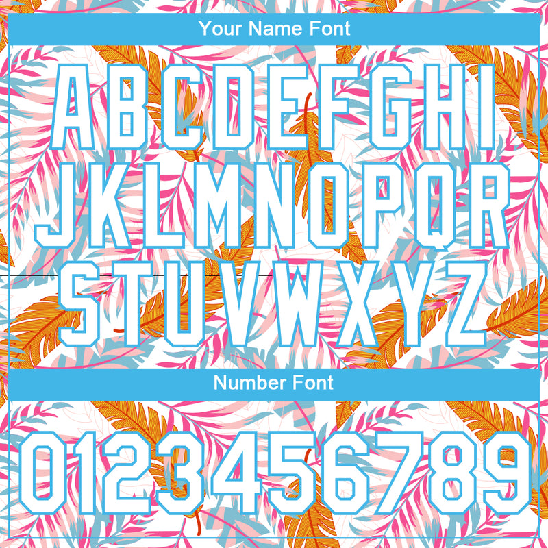 Custom White Sky Blue 3D Pattern Design Tropical Hawaii Leaves Performance T-Shirt