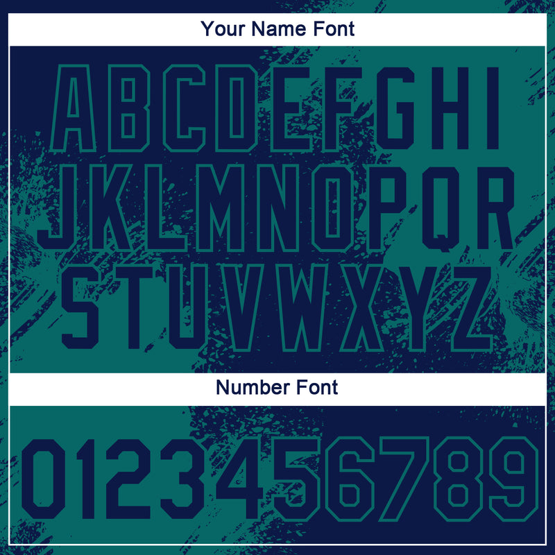 Custom Navy Teal 3D Pattern Design Abstract Brush Stroke Performance T-Shirt