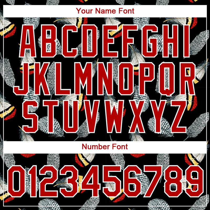 Custom Black Red-White 3D Pattern Design Feather Performance T-Shirt