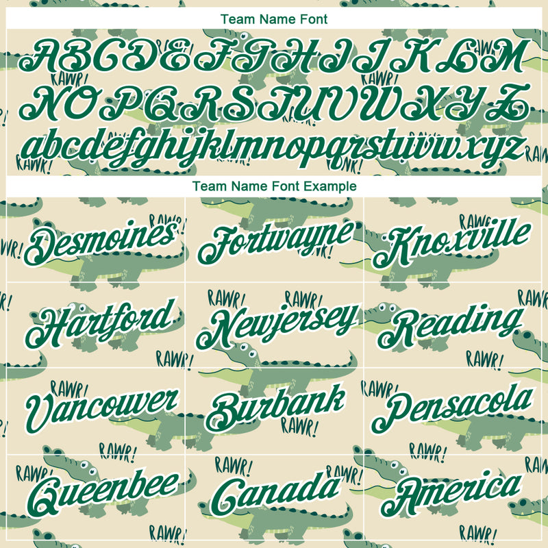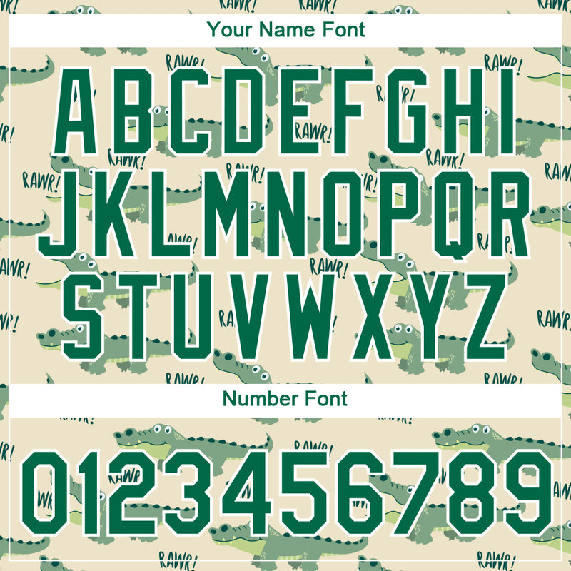 Custom Cream Kelly Green-White 3D Pattern Design Crocodile Performance T-Shirt