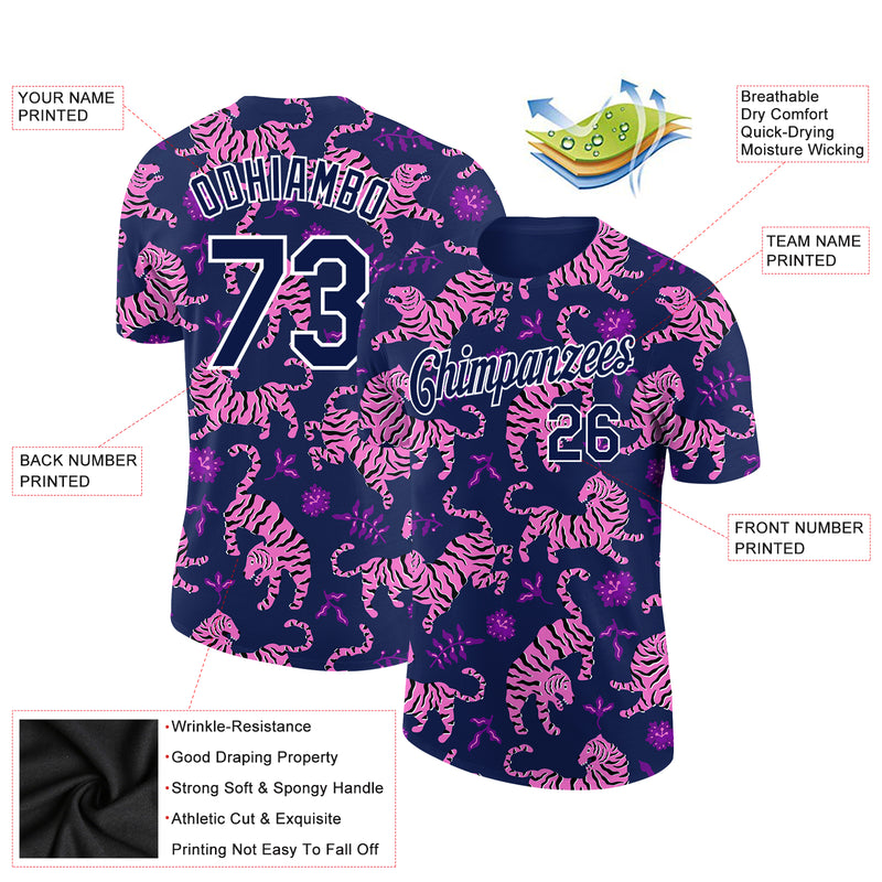Custom Navy White 3D Pattern Design Tiger Performance T-Shirt