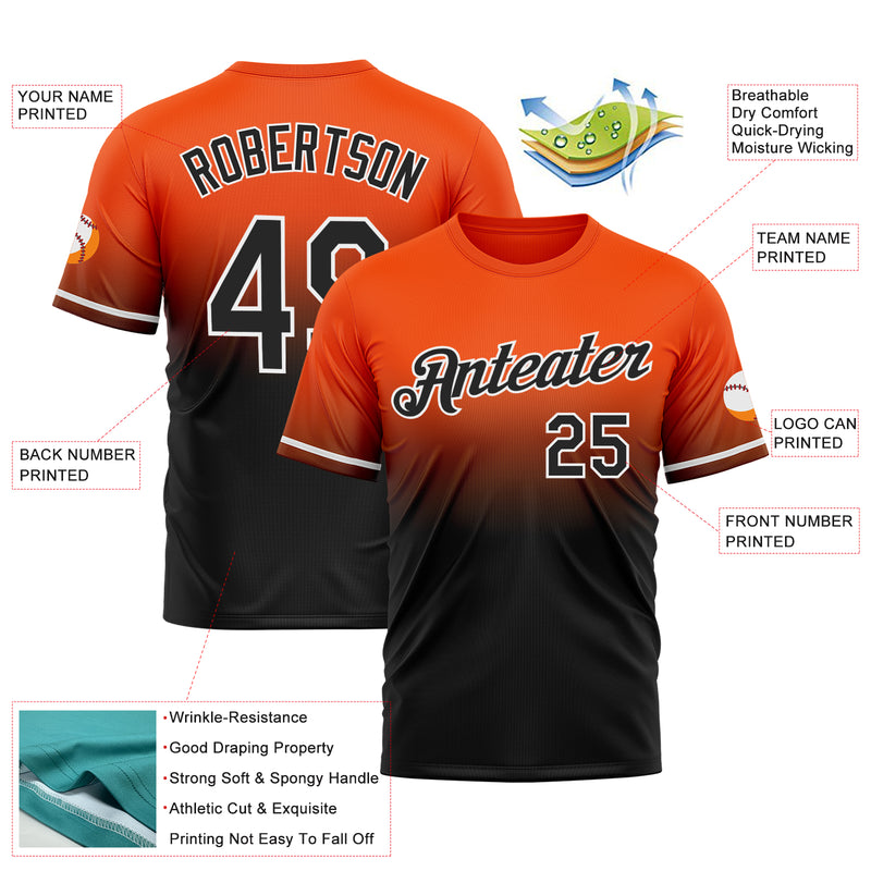 Custom Orange Black-White Fade Fashion Performance T-Shirt