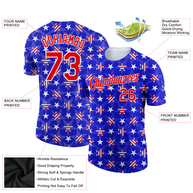 Custom Royal Red-White 3D American Flag Patriotic Performance T-Shirt