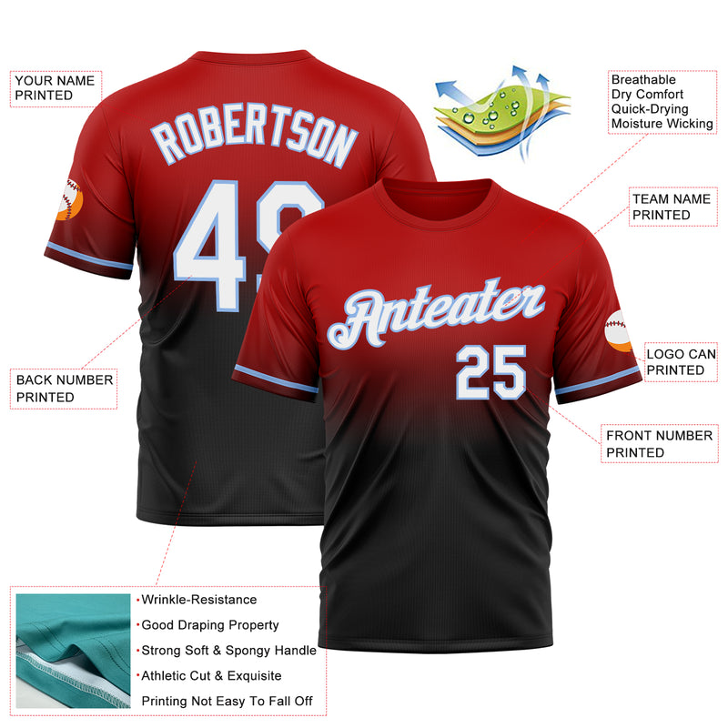 Custom Red Black-Light Blue Fade Fashion Performance T-Shirt