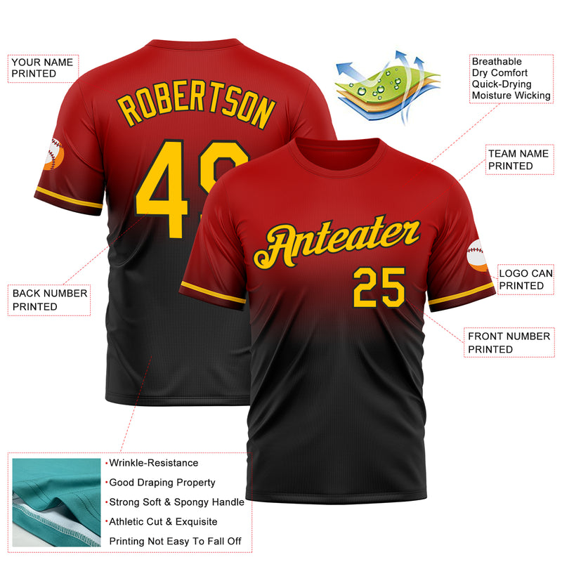 Custom Red Yellow-Black Fade Fashion Performance T-Shirt