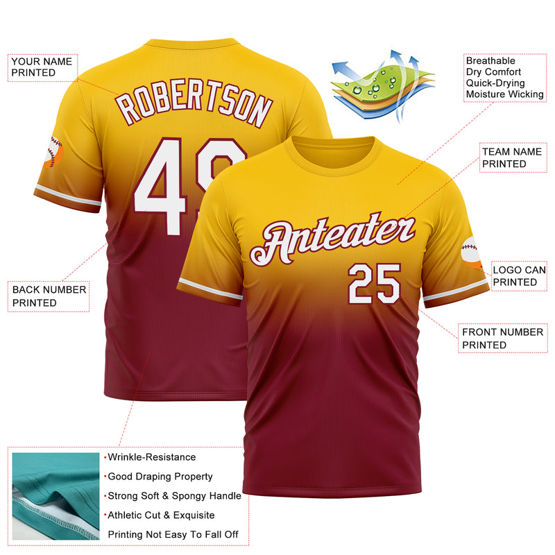 Custom Yellow White-Crimson Fade Fashion Performance T-Shirt