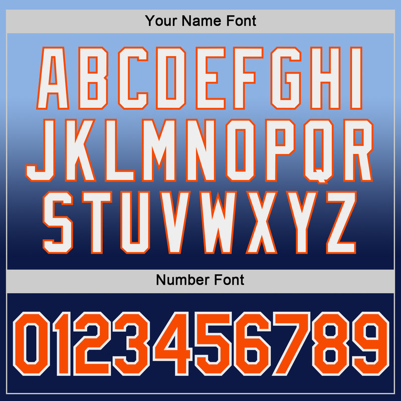 Custom Light Blue Orange-Navy Fade Fashion Performance T-Shirt