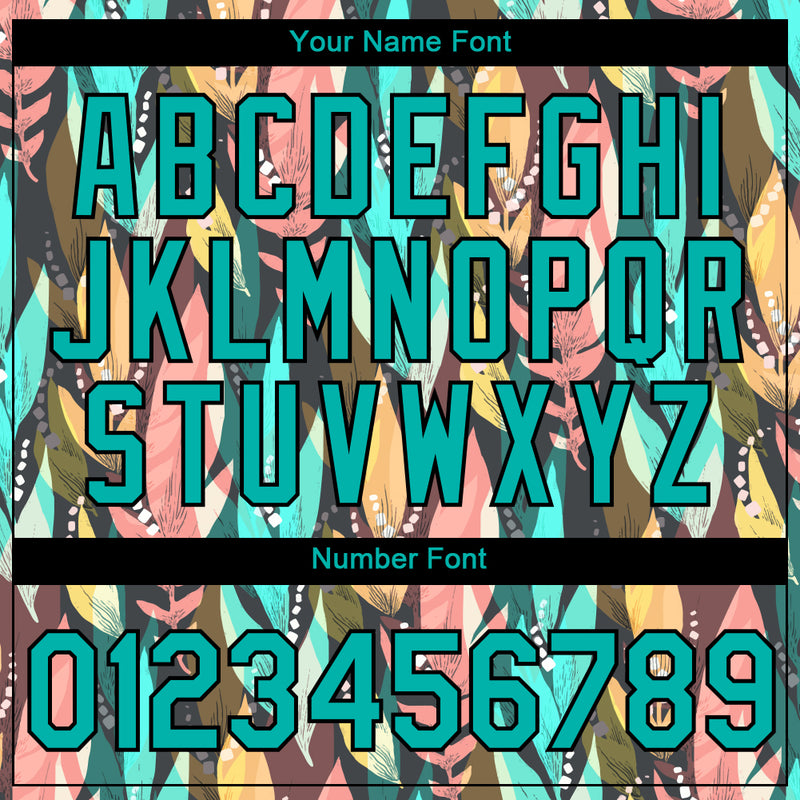 Custom Aqua Black 3D Pattern Design Tropical Palm Leaf Performance T-Shirt