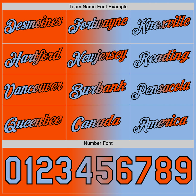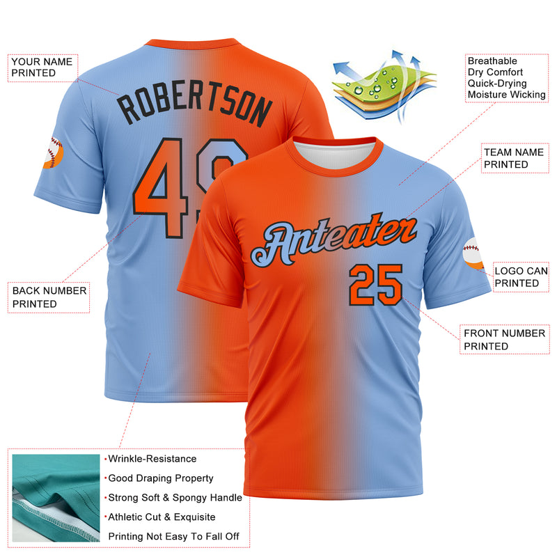 Custom Light Blue Orange-Black Gradient Fashion Performance T-Shirt