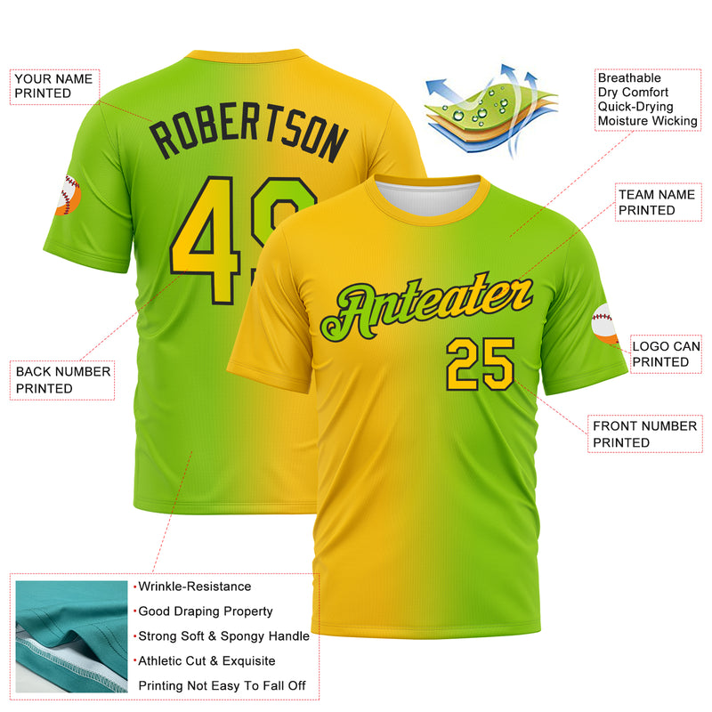 Custom Neon Green Yellow-Black Gradient Fashion Performance T-Shirt