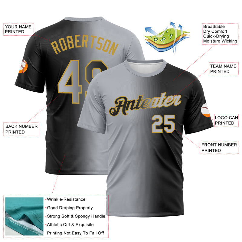 Custom Black Gray-Old Gold Gradient Fashion Performance T-Shirt