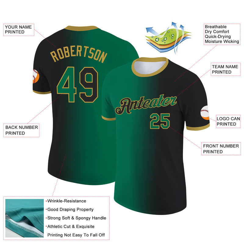 Custom Black Kelly Green-Old Gold Gradient Fashion Performance T-Shirt