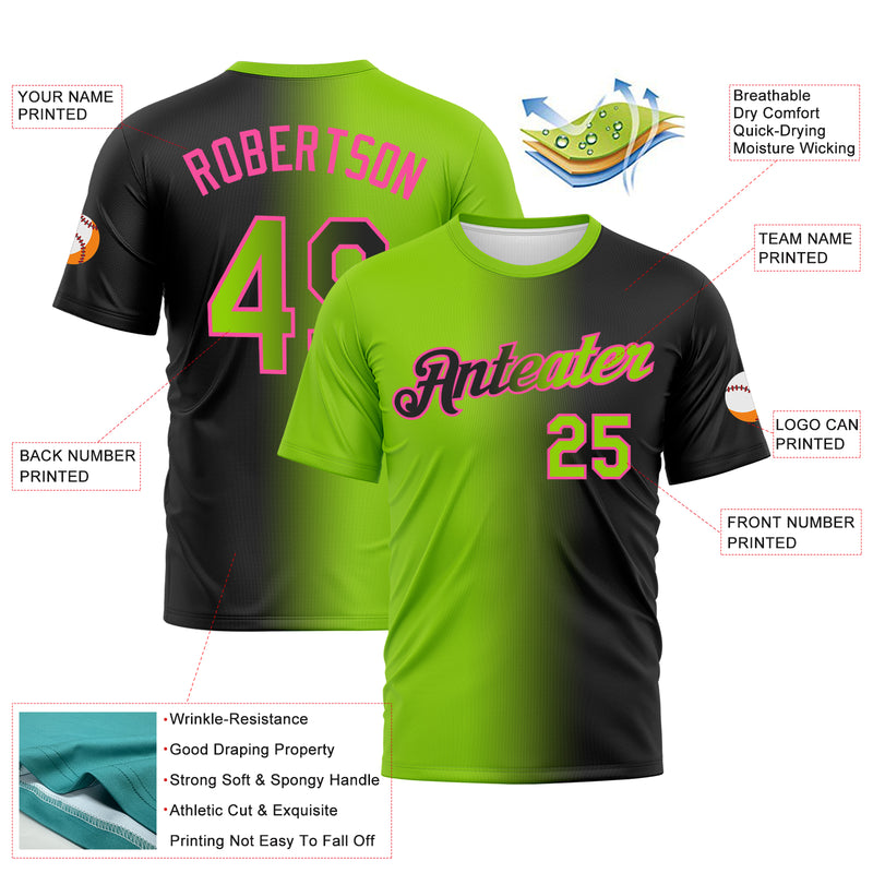 Custom Black Neon Green-Pink Gradient Fashion Performance T-Shirt