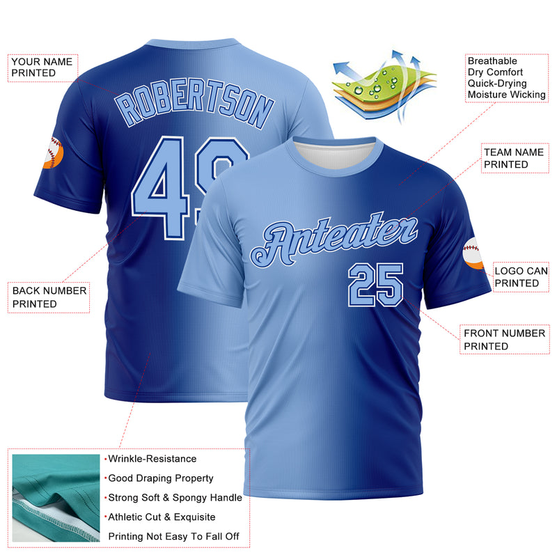 Custom Royal Light Blue-White Gradient Fashion Performance T-Shirt