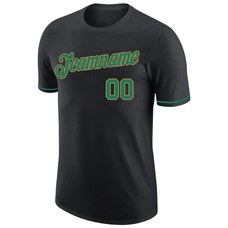 Custom Black Kelly Green-Old Gold Performance T-Shirt