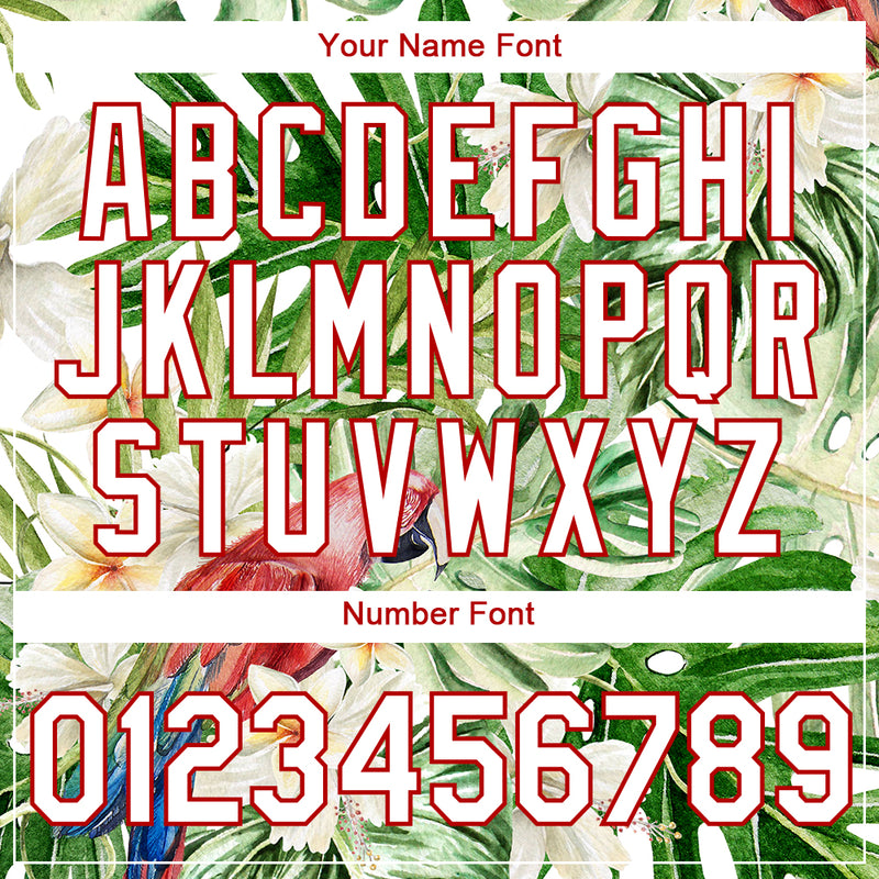 Custom White Red 3D Pattern Design Tropical Hawaii Plant With Bird Performance T-Shirt