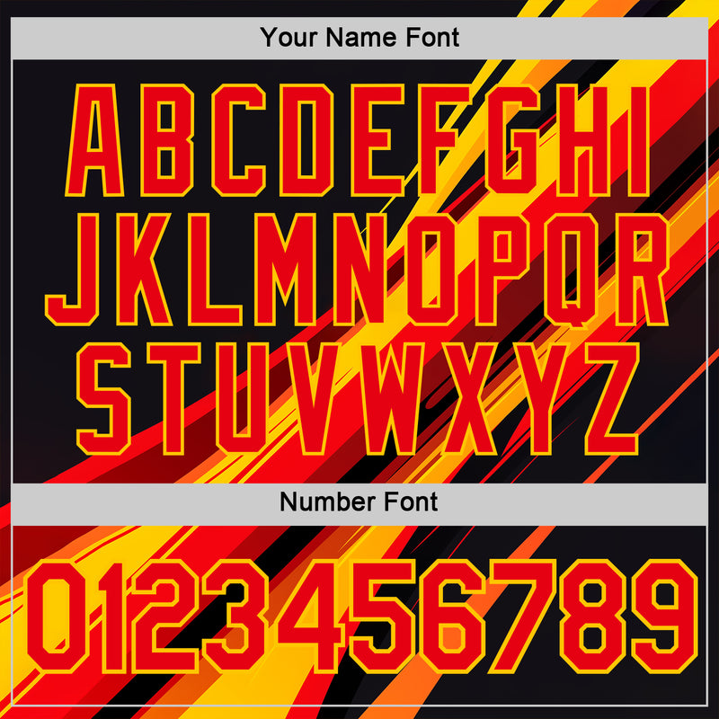 Custom Black Fire Red-Yellow 3D Pattern Design Line Sportswear Performance T-Shirt