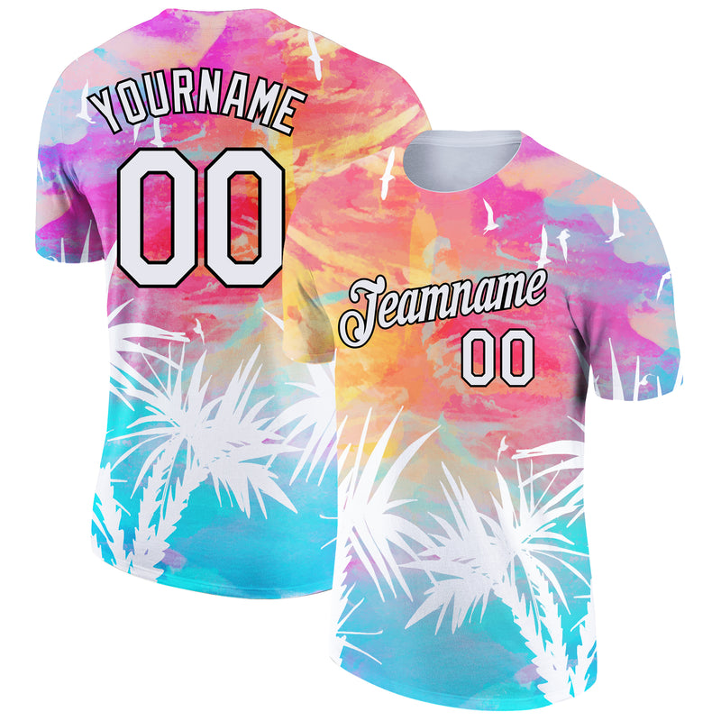 Custom White Black 3D Pattern Design Hawaii Palm Leaves Performance T-Shirt