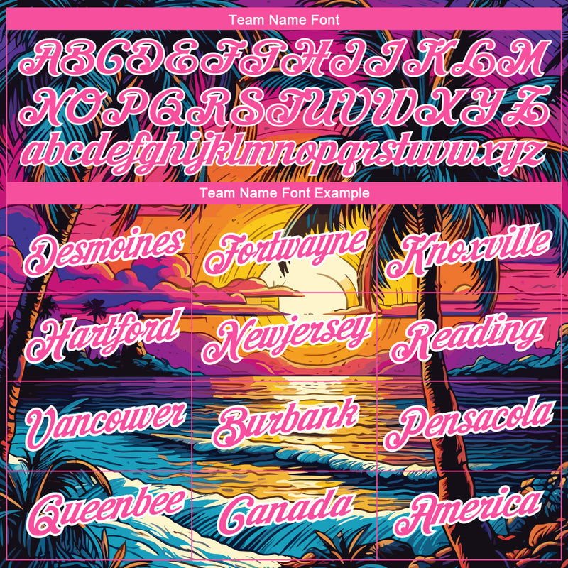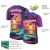 Custom Purple Pink-White 3D Pattern Design Hawaii Palm Trees On Beach Performance T-Shirt