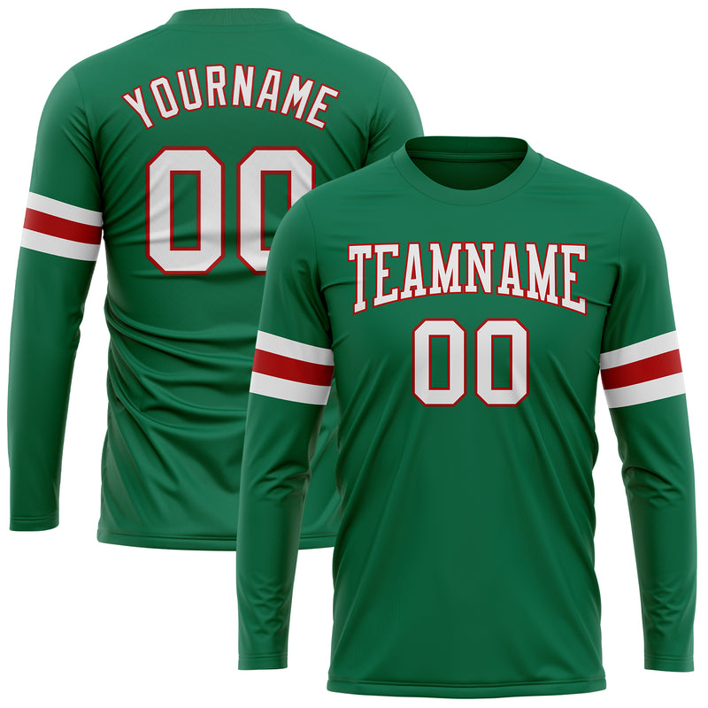 Custom Kelly Green White-Red Long Sleeve Performance Salute To Service T-Shirt