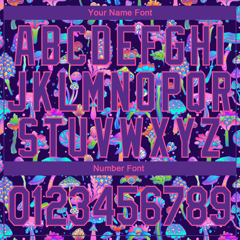 Custom Black Purple-Pink 3D Pattern Design Colorful Flowers And Mushrooms Psychedelic Hallucination Performance T-Shirt