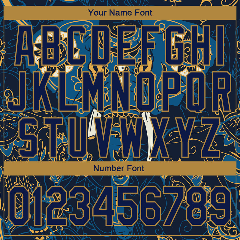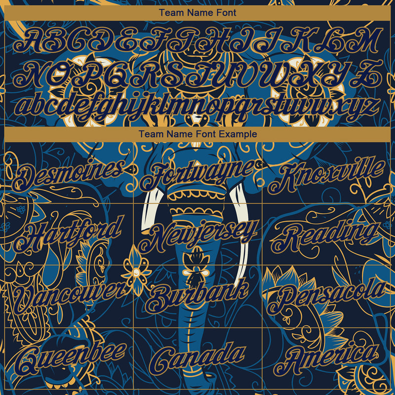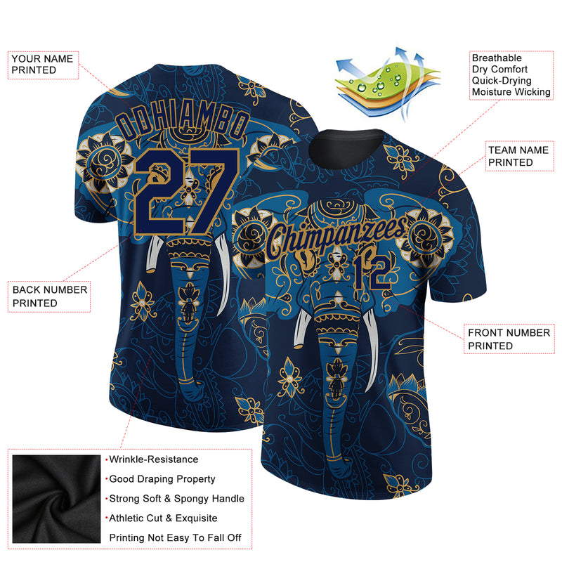 Custom Navy Old Gold 3D Pattern Design Elephant Performance T-Shirt