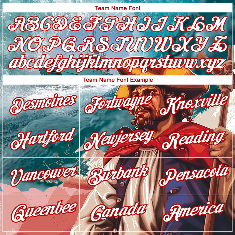 Custom Shadow Blue White-Red 3D Pattern Design Sailing Ship Columbus Day Performance T-Shirt