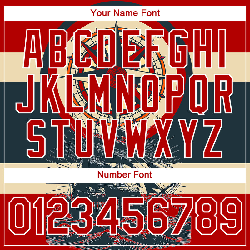Custom Red White 3D Pattern Design Sailing Ship Compass Columbus Day Performance T-Shirt