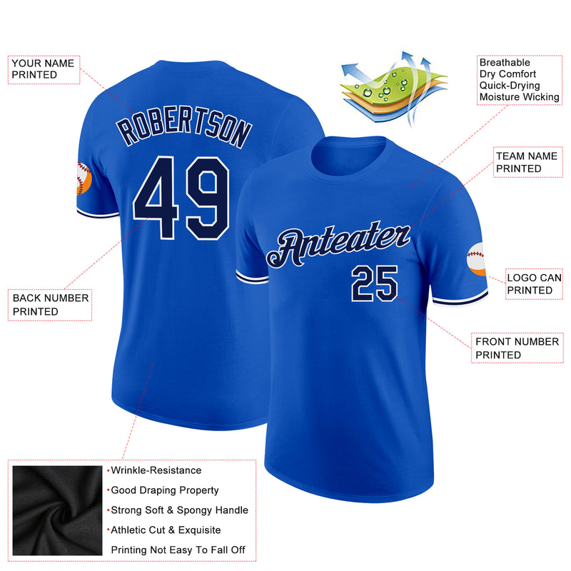 Custom Thunder Blue Navy-White Performance T-Shirt