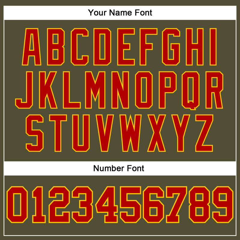 Custom Olive Red-Gold Long Sleeve Performance Salute To Service T-Shirt