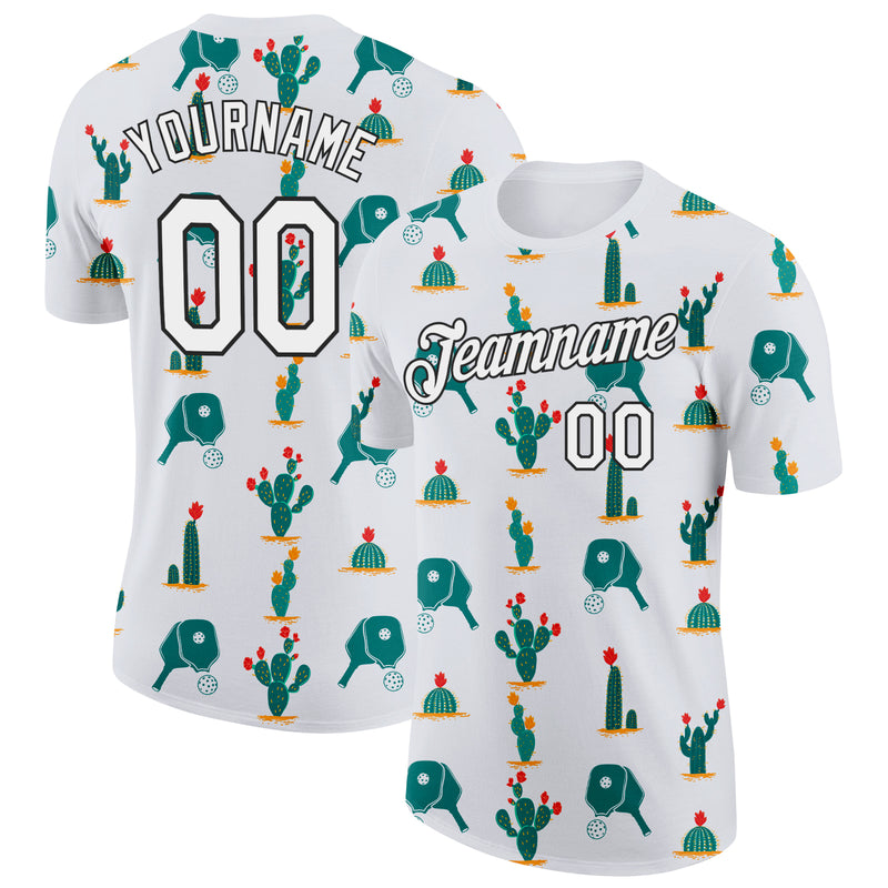 Custom White Black 3D Pickleball Paddles Balls Cactus Performance T-Shirt