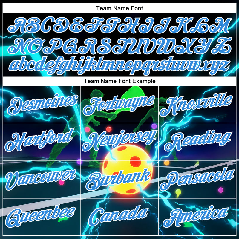 Custom Navy Powder Blue-White 3D Charged Pickleball Paddles Balls Court Performance T-Shirt