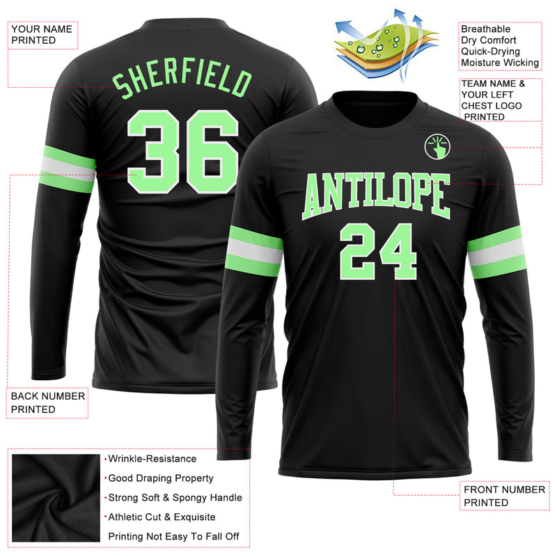 Custom Black Pea Green-White Long Sleeve Performance T-Shirt